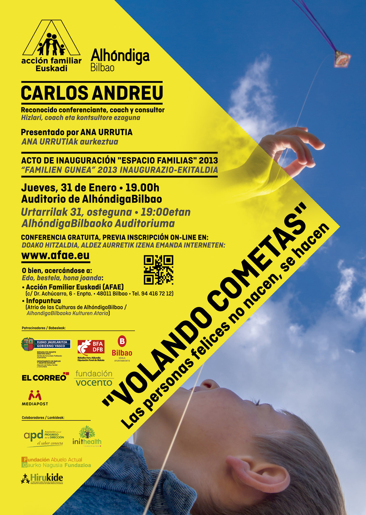 Te invitamos a este acto que tendrá lugar el JUEVES 31 DE ENERO, A LAS 19.00H EN EL AUDITORIO DE ALHÓNDIGABILBAO. La entrada es gratuita con invitación que puedes solicitar a través de la página web: www.afae.eu