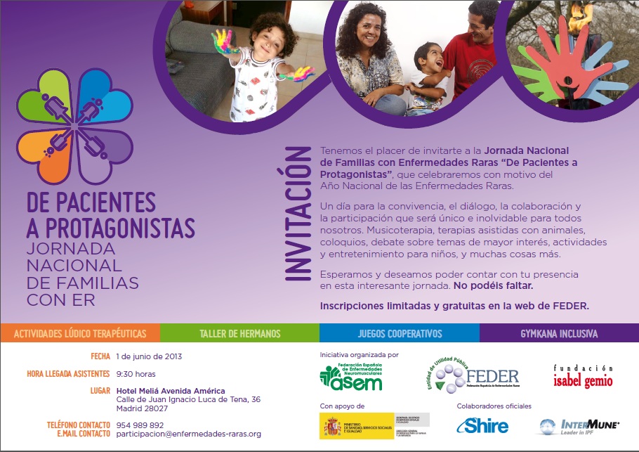 El año 2013, ha sido declarado “Año Nacional de las Enfermedades Raras”, por ello, el próximo 1 de junio en Madrid se va a llevar a cabo una jornada que sirva de espacio de encuentro, diálogo y convivencia para el movimiento asociativo de ER.